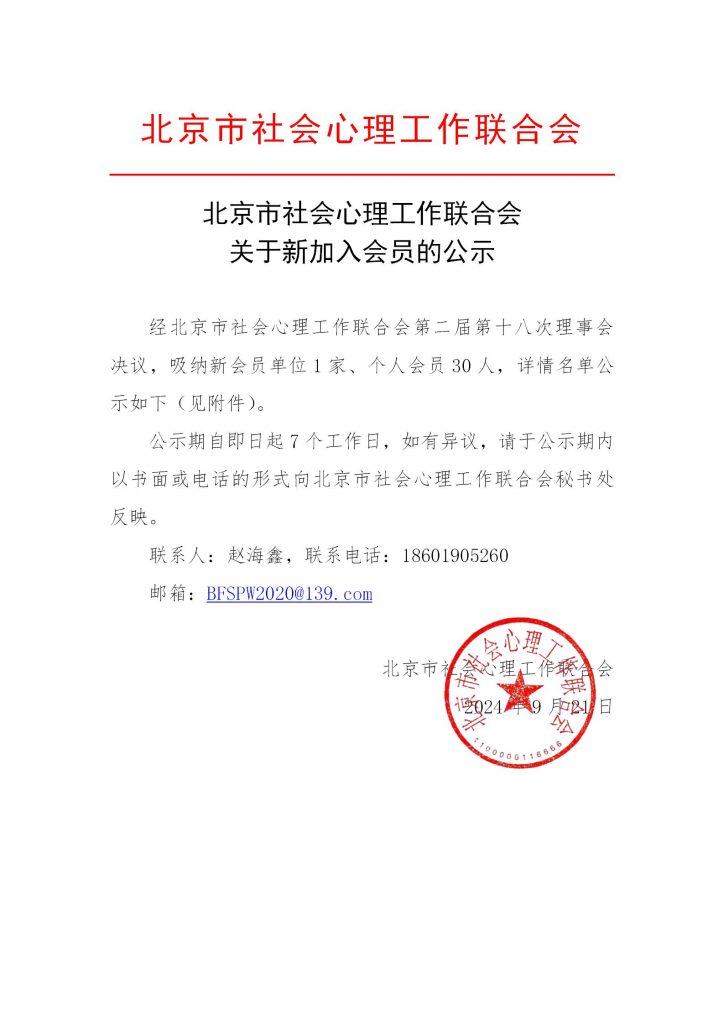 北京市社会心理工作联合会关于新加入会员的公示 – 北京市社会心理工作联合会-凯发k8天生赢家