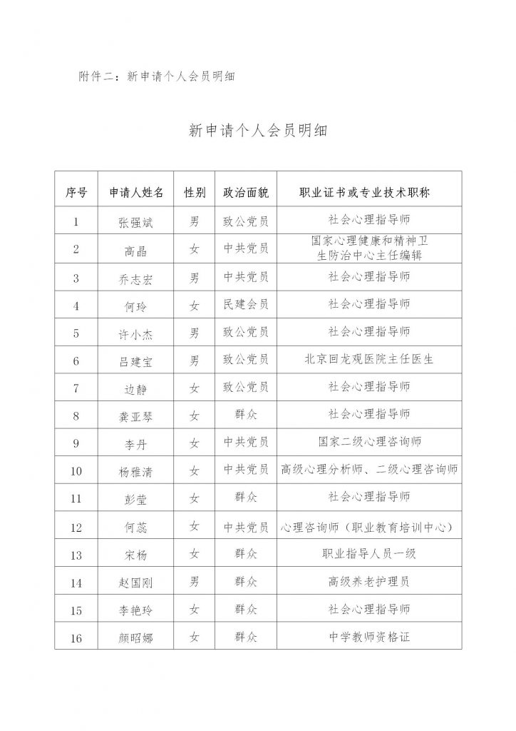 北京市社会心理工作联合会关于新加入会员的公示