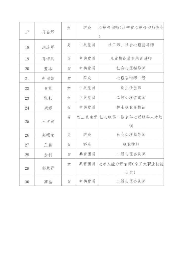 北京市社会心理工作联合会专业工作部委员名单公示