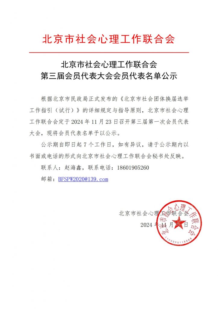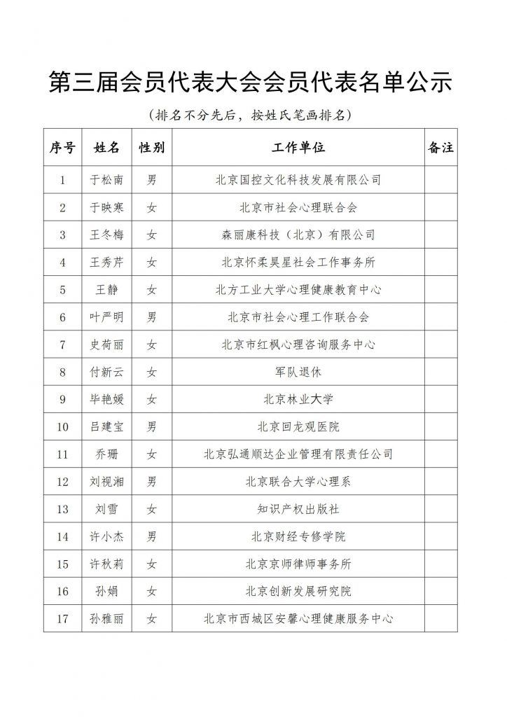 北京市社会心理工作联合会第三届会员代表大会会员代表名单公示 – 北京市社会心理工作联合会-凯发k8天生赢家