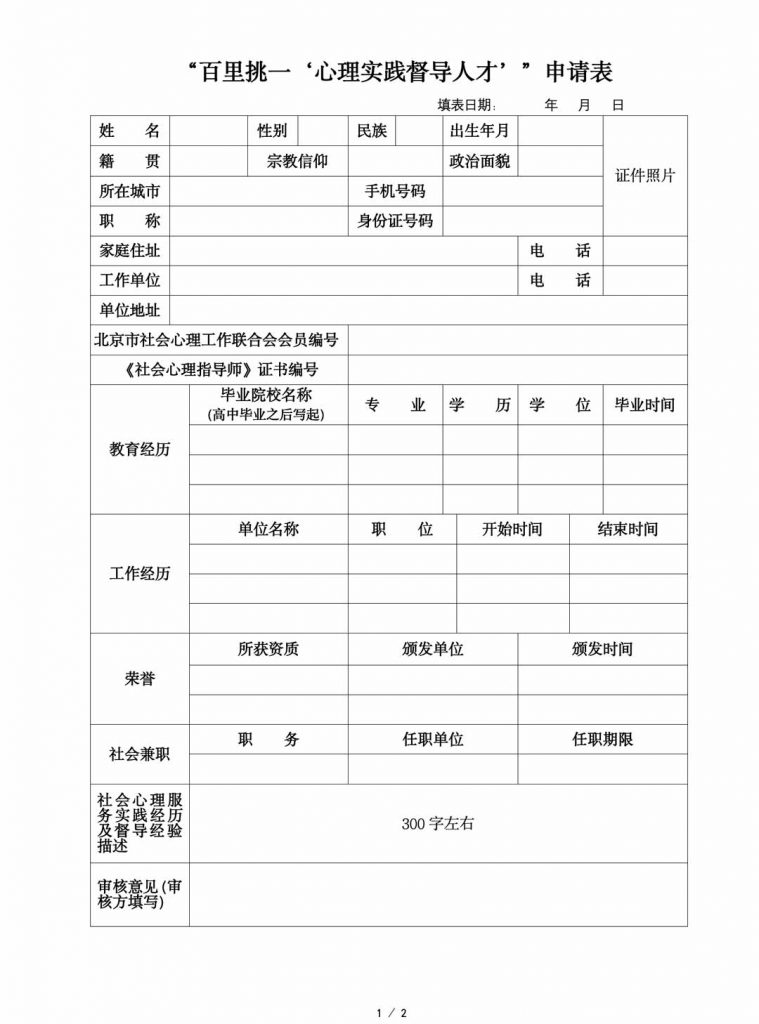 - 1.《“百里挑一‘心理实践督导人才’”申请表》